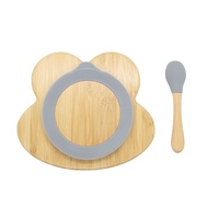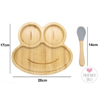 Bamboo Kids Children Baby Plate Bowl & Silicon Suction Cap Base & Spoon - Frog
