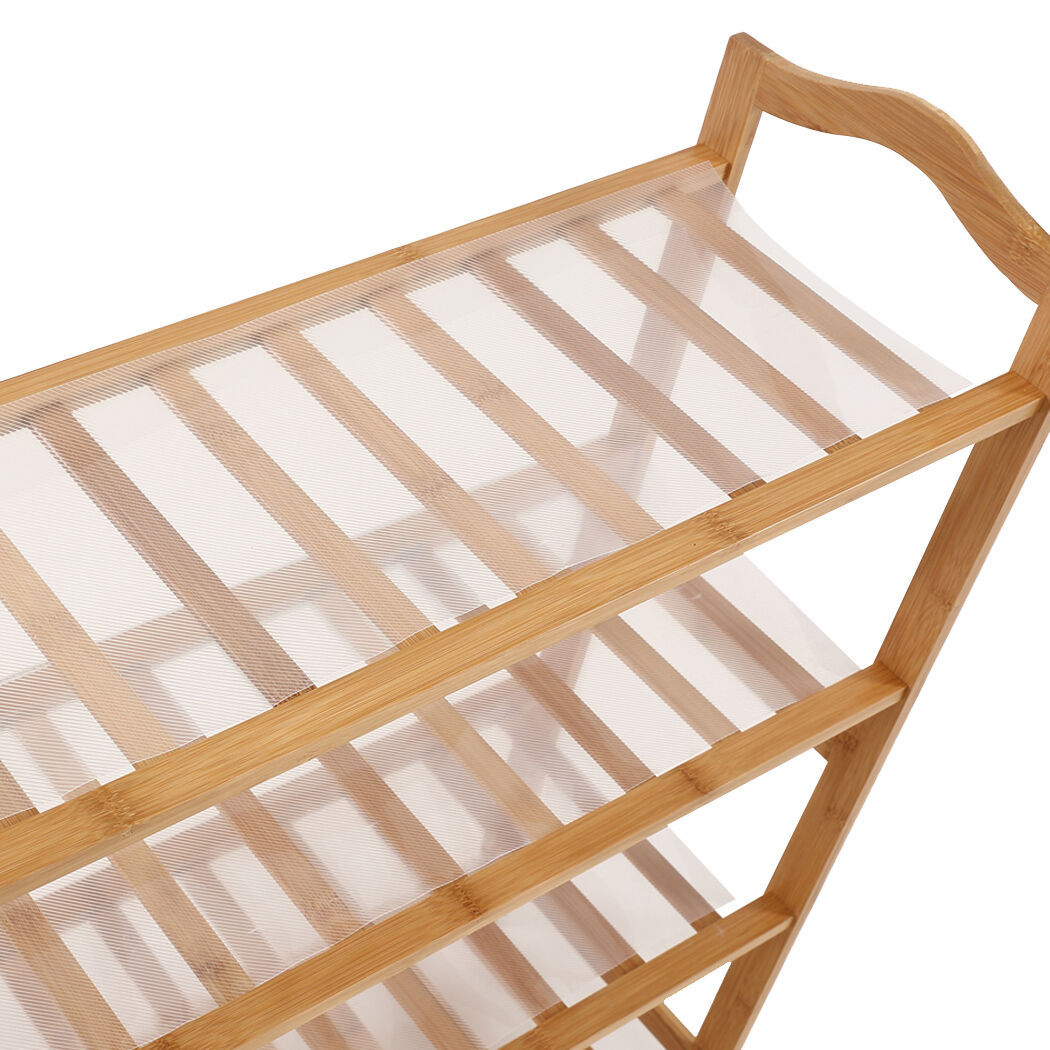 $48.87Our 100% Natural bamboo shoe rack is eco-friendly, non-toxic and tough, with countersunk screws and rounded.This bamboo shoe rack will last a lot longer than plastic one, looks much nicer and gives your home a modern look. It is 80cm Width, longer than other seller. Two convenient integrated handles facilitate easy carrying while the open design allows for good ventilation for your footwear wherever you place it. In the hallway, balcony, patio, bedroom or children’s room, the Bamboo Shoe Rack will certainly not be deemed out of character with your home décor. PVC MAT in each tier prevent dust from falling off your shoes.