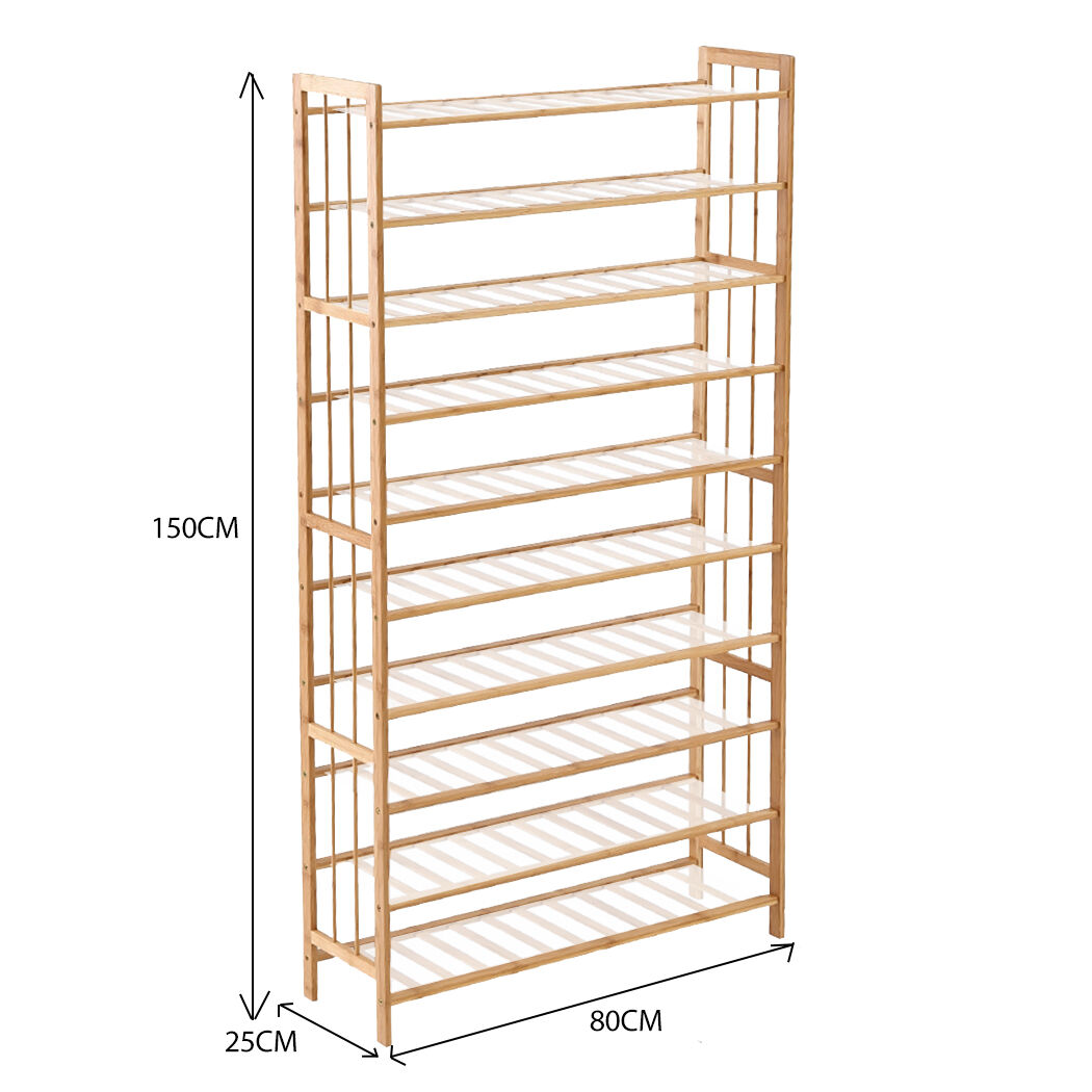 Our 100% Natural bamboo shoe rack is eco-friendly, non-toxic and tough, with countersunk screws and rounded. This bamboo shoe rack will last a lot longer than plastic one, looks much nicer and gives your home a modern look. It is 80cm Width, longer than other seller. Two convenient integrated handles facilitate easy carrying while the open design allows for good ventilation for your footwear wherever you place it. In the hallway, balcony, patio, bedroom or children’s room, the Bamboo Shoe Rack will certainly not be deemed out of character with your home décor. PVC MAT in each tier prevent dust from falling off your shoes.