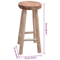 This wooden bar stool has a rugged design, and will bring a touch of rustic charm to restaurants or bars, but also to your living room or dining room at home. The bar stool has a solid teak construction, which makes it stable and highly durable. The beautiful wood grains on the seat make each of our bar chairs unique and slightly different from the next. The legs have a curved shape, which highlights the rustic design. Note: The wood grains and leg shape may vary from piece to piece. Delivery is random. The item is already assembled; no assembly is required.