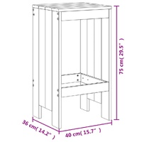 These wooden bar stools exude a rustic charm and bring an inviting ambience to your patio or balcony. Solid pine wood: Solid pine wood is a beautiful natural material. Pine wood has a straight grain, and the knots give the material its signature, rustic look. Made of solid pine wood, these stools are durable for outdoor use.Reasonable design: The seat height of the chair is 75 cm, which is suitable for most people's height. Whether it’s eating or talking, you can have a comfortable experience.Additional comfort: The footrest of the wooden bar chair creates extra space to relax your legs. Good to know:To make sure your outdoor furniture stays beautiful, we recommend protecting it with a waterproof cover.