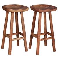 This set of wooden bar stools has a simple, yet timeless design, and will suit a wide variety of settings, such as homes, offices, bars and cafes. The stools are made of high-quality acacia wood, a tropical hardwood, which is weather-resistant and very durable. The natural matte-finished surface is easy to clean with a damp cloth. This stool set is handmade, and the craftsmanship adds to its spectacular retro style. Every step of the process is carried out with the greatest care, be it polishing or lacquering. Delivery includes 2 bar stools. Important note: Colours vary from piece to piece, making each of our stools unique. The delivery is random, ensuring the exclusivity and individuality of your product.