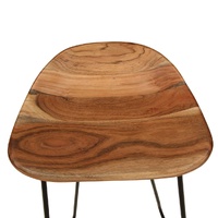 These wooden bar stools feature an iconic look and keep up with the industrial style that's all the rage right now. They will look great not only in restaurants or bars, but also in your living room or dining room at home. These bar chairs are made of solid acacia wood, which makes the stools highly durable. Additionally, the exquisite craftsmanship guarantees that every step of the process is carried out with the greatest care, be it polishing, painting or lacquering. The powder-coated steel legs add to the stools' stableness and industrial style. Important note: The wood grains vary from piece to piece, making each piece unique. The delivery is random, ensuring the exclusivity and individuality of your product. Delivery includes 2 wooden bar stools.
