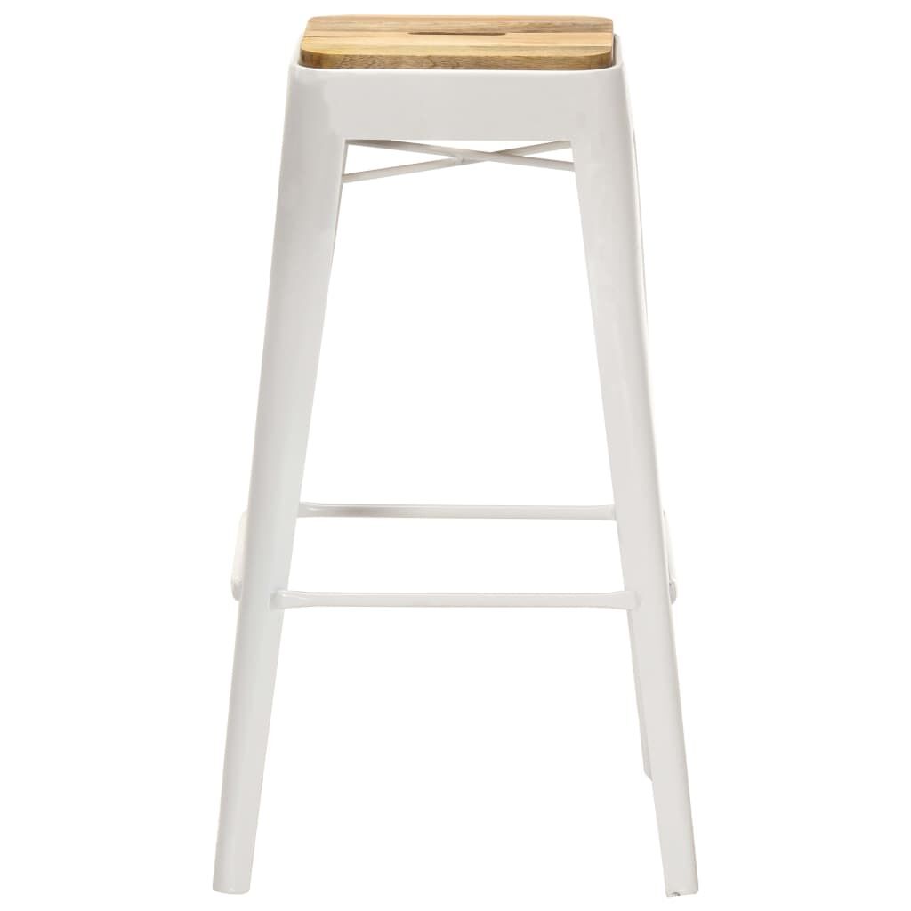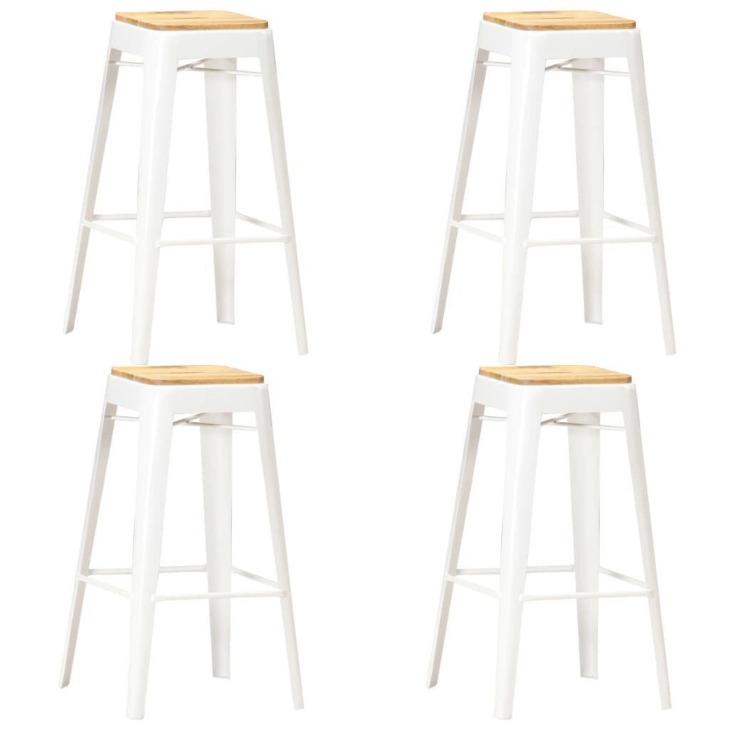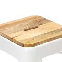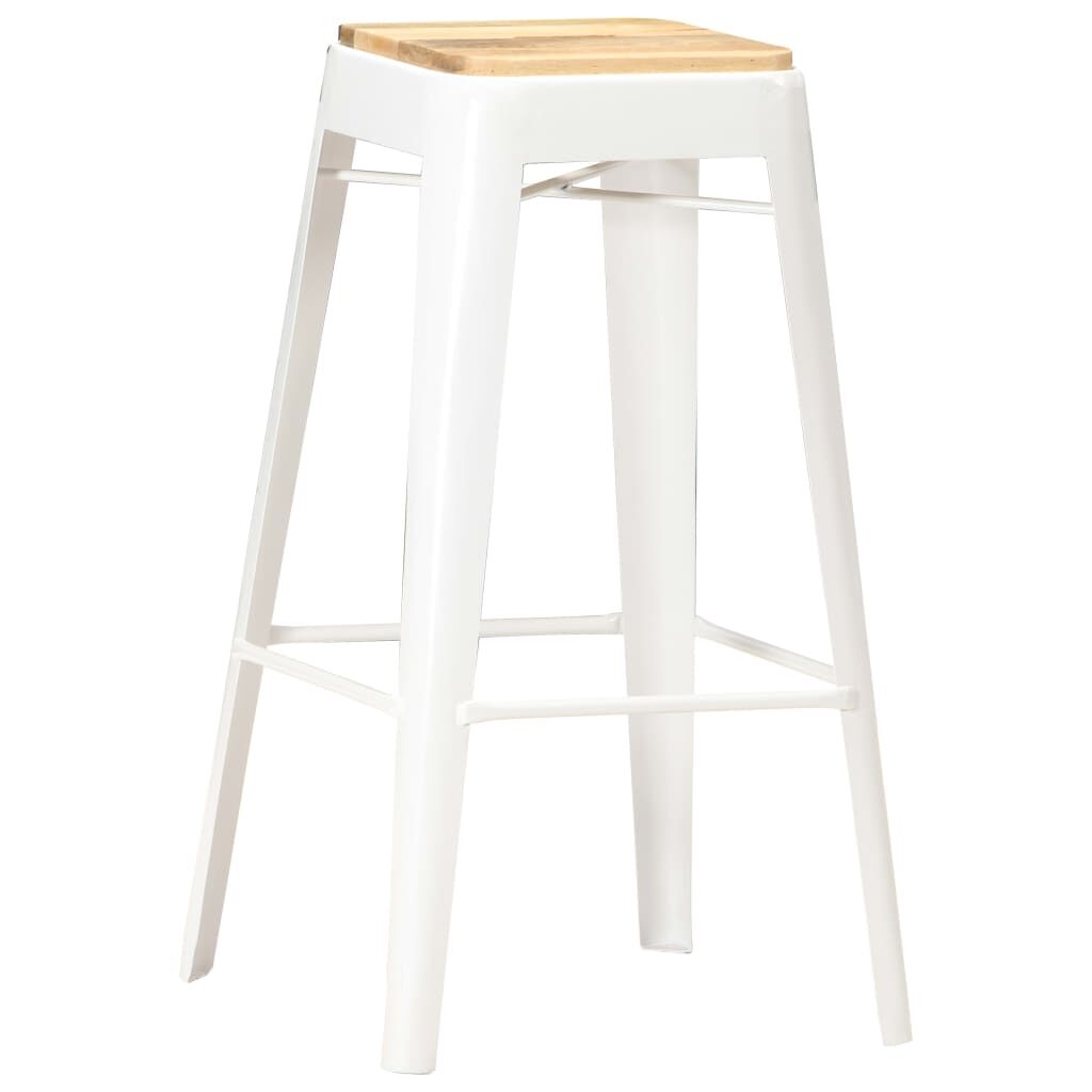 This wooden bar stool set which consists of 4 pieces, with a simple yet elegant design, will make a great addition to your dining room or kitchen. The stools are made of solid mango wood, which makes them very sturdy, durable and easy to clean with a damp cloth. The powder-coated steel legs add extra stability to the stools. Mango wood is a dense and robust hardwood which has beautiful brown or golden streaks and contours on its surface. The bar chairs are easy to assemble. Delivery includes 4 bar stools. Important note: The exquisite craftsmanship and the beautiful solid mango wood grains make every piece of furniture unique and slightly different from the next. The delivery is random, ensuring the exclusivity and individuality of your product.