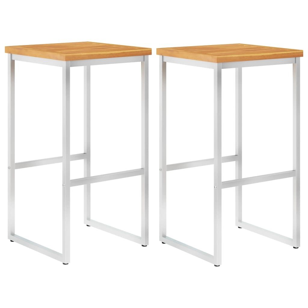 $154.15This bar chair set is designed to make a great addition to your outdoor living space. Made of solid acacia wood in teak look and high grade-stainless steel 304, the chair set is weather-resistant, rust-resistant and highly durable. Additionally, the oil-finished surface is easy to clean with a damp cloth. The chairs are easy to assemble. Delivery includes 2 bar chairs.