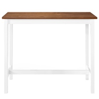 This sleek bar table has a simple, yet stylish design and will make a practical as well as decorative addition to any home, bar or restaurant. It can also be used as a side table or console table. This table has an MDF tabletop with wood veneer and solid wooden legs for sturdiness. The bar table has been given a beautiful finish by sanding, painting and lacquering to give it a refined look. It is easy to clean with a damp cloth. Assembly is easy.
