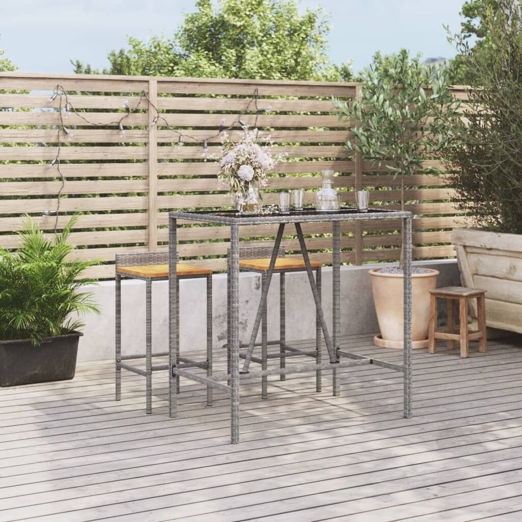 $112.79This trendy bar table with glass top, combining both style and function, is surely meant to be the centrepiece of your garden, patio, and any other living space. Weather-resistant material: PE rattan, also known as poly rattan, is weather resistant and easy to clean. It remains beautiful on the outside for a long period of time. It offers great quality, convenience and an aesthetic look.Tempered glass tabletop: The tabletop is made of tempered glass, making it easy to clean. Additionally, it offers excellent support for holding your drinks, snacks, and your favourite decorations.Sturdy frame: The powder-coated steel frame makes the bistro table sturdy and stable for daily outdoor use.Wide applications: The pub table, with its remarkable design, creates a pleasant overall appearance that integrates effortlessly into any environment. Good to know:To make assembly as easy as possible, each product is delivered with a manual. Note:To make sure your outdoor furniture stays beautiful, we recommend protecting it with a waterproof cover.