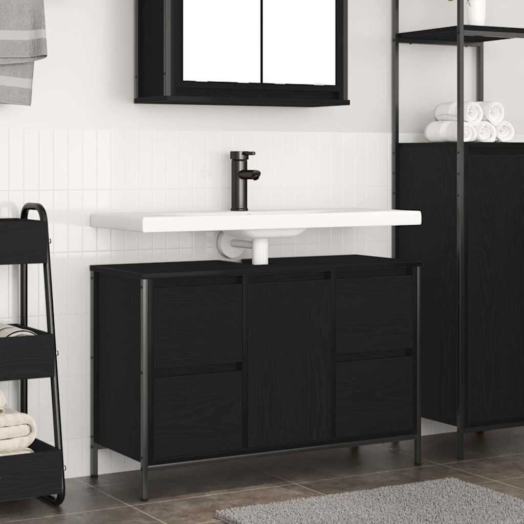 The bathroom basin cabinet offers versatile storage solutions, keeping your space tidy and organised while adding both practicality and aesthetics to your living space. Stable and durable material: Engineered wood is a durable and stable material with a smooth surface that is resistant to moisture, warping, and splitting, making it a reliable choice for a variety of projects.Ample storage space: The cabinet features multiple smooth-opening drawers to keep items organised and easily accessible. It also includes an enclosed cabinet with an interior shelf, offering generous space for various bathroom essentials.Sturdy and strong tabletop: The robust tabletop provides a reliable surface for supporting a basin (not included) and keeping essentials within easy reach, making it ideal for daily use. Whether holding vanity items or decorative pieces, its durable construction ensures it can handle a variety of tasks with ease.Customisable installation: The cabinet door can be installed to open either to the left or right, depending on personal preferences or the layout of your space.Easy to maintain: The smooth surface of the bathroom cabinet is easy to clean with a damp cloth and requires minimal maintenance. Warning:To prevent it from tipping over, this product must be used with the provided wall attachment device. Good to know:The basin is not included in the delivery.