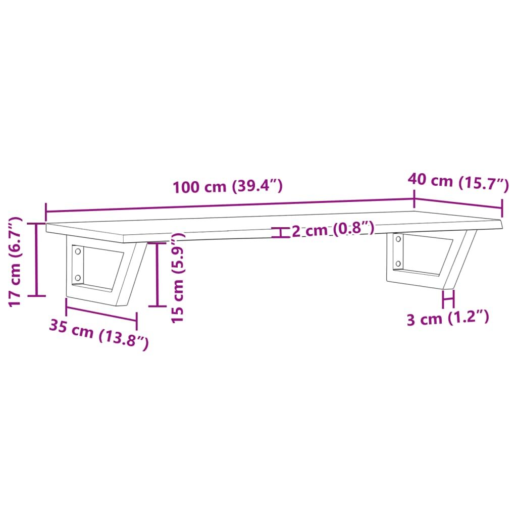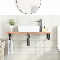 The wall mounted basin shelf securely attaches to the wall, providing an elegant and space-saving solution for your bathroom. Sturdy and long-lasting: This basin shelf is combined with a steel structure and a solid oak wood top, making it sturdy, stable, and long-lasting.Space-saving: The floating basin shelf has ample space to store creams and small items. Thanks to the trapezium shape, you can hang towels or other things on the support to save space.Easy to use: The countertop comes undrilled to allow the basin to be mounted on the left, right, or in the centre, depending on your room's requirements. Thanks to the pre-drilled holes in the holder, it can be easily assembled with the tabletop and mounted on the wall.Wide applications: Thanks to its modern design, it provides additional space for various types of bathrooms. Good to know:Screws are not included, you can purchase the screws separately based on the information provided below.Wall attachment: 2 pcs M8 expansion screws per bracketWooden top: 2 pcs M5x18 screws (T=2) or 2 pcs M5x20 screws (T=2.5/4cm) per bracketAs a natural product, wood may show knots and imperfections that we fill with black fillings to ensure a smooth appearance.