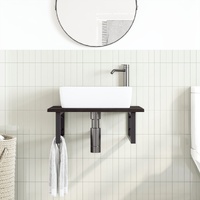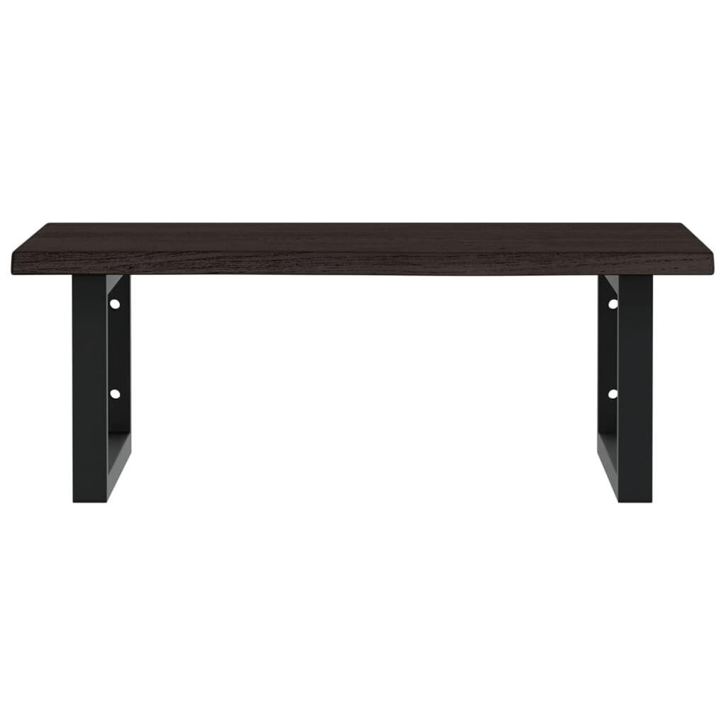 The wall mounted basin shelf securely attaches to the wall, providing an elegant and space-saving solution for your bathroom. Sturdy and long-lasting: This basin shelf is combined with a steel structure and a solid oak wood top, making it sturdy, stable, and long-lasting.Space-saving: The floating basin shelf has ample space to store creams and small items. Thanks to the rectangular shape, you can hang towels or other things on the support to save space.Easy to use: The countertop comes undrilled to allow the basin to be mounted on the left, right, or in the centre, depending on your room's requirements. Thanks to the pre-drilled holes in the holder, it can be easily assembled with the tabletop and mounted on the wall.Wide applications: Thanks to its modern design, it provides additional space for various types of bathrooms. Good to know:Screws are not included, you can purchase the screws separately based on the information provided below.Wall attachment: 2 pcs M8 expansion screws per bracketWooden top: 2 pcs M5x18 screws (T=2) or 2 pcs M5x20 screws (T=2.5/4cm) per bracketAs a natural product, wood may show knots and imperfections that we fill with black fillings to ensure a smooth appearance.
