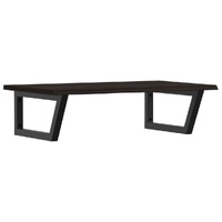 The wall mounted basin shelf securely attaches to the wall, providing an elegant and space-saving solution for your bathroom. Sturdy and long-lasting: This basin shelf is combined with a steel structure and a solid oak wood top, making it sturdy, stable, and long-lasting.Space-saving: The floating basin shelf has ample space to store creams and small items. Thanks to the trapezium shape, you can hang towels or other things on the support to save space.Easy to use: The countertop comes undrilled to allow the basin to be mounted on the left, right, or in the centre, depending on your room's requirements. Thanks to the pre-drilled holes in the holder, it can be easily assembled with the tabletop and mounted on the wall.Wide applications: Thanks to its modern design, it provides additional space for various types of bathrooms. Good to know:Screws are not included, you can purchase the screws separately based on the information provided below.Wall attachment: 2 pcs M8 expansion screws per bracketWooden top: 2 pcs M5x18 screws (T=2) or 2 pcs M5x20 screws (T=2.5/4cm) per bracketAs a natural product, wood may show knots and imperfections that we fill with black fillings to ensure a smooth appearance.