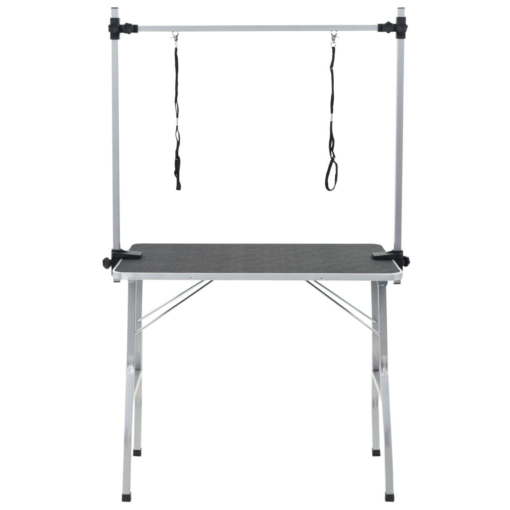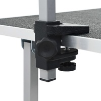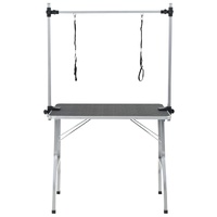 This grooming table is perfect for home and mobile groomers, dog shows etc. It features a non-slip tabletop and a powder-coated iron frame with an adjustable grooming arm and loop. This professional foldable grooming table is versatile and brings comfort to any grooming situation. The table top with an anti-skid rubber surface creates a comfortable surface for your pets to stand on while you groom. Also, the heavy-duty quality grooming arm is convenient to dismount when not in use for easy storage and transport, not to mention the height adjustable design which conforms to ergonomics. The adjustable grooming loops restrain pets safely and feature improved locking slide clasps. Delivery includes 1 grooming table, 1 clamp-on twin grooming arm and 2 grooming loops.
