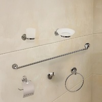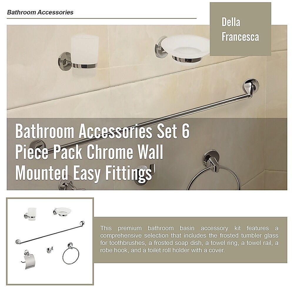 $45.11This premium bathroom basin accessory kit features a comprehensive selection that includes the frosted tumbler glass for toothbrushes, a frosted soap dish, a towel ring, a towel rail, a robe hook, and a toilet roll holder with a cover. These six individual accessories perfectly complement each other, creating a cohesive and stylish chrome bathroom set.