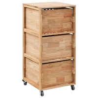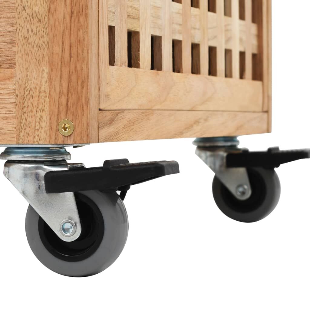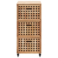 Our wooden bathroom cabinet, with a stylish and natural design, will become an eye-catcher in your bathroom, living room or hallway. The bathroom container has three baskets, which provide ample storage space for things such as towels, laundry, hygiene products, etc. The lattice design allows for a good ventilation of the things inside the baskets. Made of solid walnut wood and plywood, the cabinet is very sturdy and durable. Thanks to the four castors, the cabinet is easy to move around. The bathroom cabinet is easy to assemble.