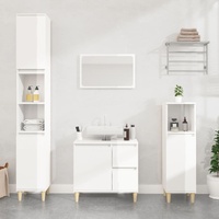 $69.55This bathroom cabinet is a great choice for your bathroom, making it tidy and organised! Durable material: The engineered wood is of exceptional quality with smooth surface and also features strength, stability, and resistance to moisture.Ample storage space: The bathroom furniture has 2 drawers and 1 compartment with door, offering various storage options and extra space to store items in your bathroom.Wooden feet: The solid eucalyptus wood feet give the bathroom cupboard a natural and pleasant look while ensuring stability.Flexible design: You can install the door and drawers either on the left side or right side based on your own needs. Warning:To prevent it being overturned, this product must be used with the provided wall attachment device.