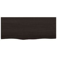 Are you planning to renovate your countertops at home? This wooden bathroom countertop is a perfect choice! Durable construction: This bathroom worktop is made of solid oak wood, which is a beautiful natural material. Oak wood has a medium brown colour and a dense grain, contributing to its unique look.Versatile applications: Besides a bathroom vanity top, this wooden countertop can be combined with different bases according to your needs. It can be used as a shelf, cabinet top, desk top, table top etc.Treated surface: The bathroom top has been treated with dark paint, so it is ready for use as an additional finish is not required.Handmade with live edge: This bathroom vanity countertop is handmade with a live edge. Due to that the knots, cracks, slightly curved shapes, and colour tones are part of the oak wood, every piece of oak countertop has its own unique character to display. The delivery is random. Good to know:As a natural product, wood may show knots and imperfections that we fill with black fillings to ensure a smooth appearance.
