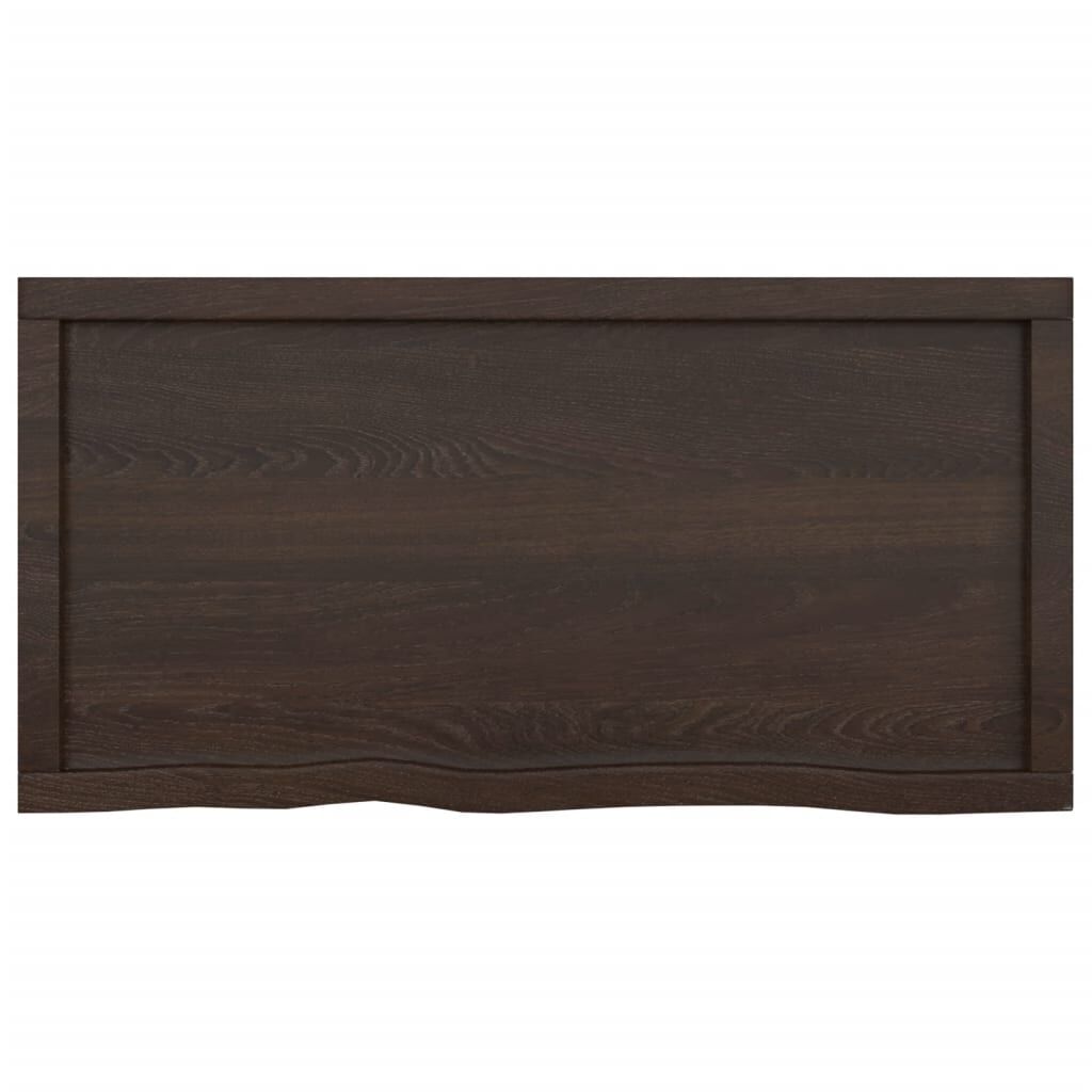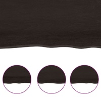 Are you planning to renovate your countertops at home? This wooden bathroom countertop is a perfect choice! Durable construction: This bathroom worktop is made of solid oak wood, which is a beautiful natural material. Oak wood has a medium brown colour and a dense grain, contributing to its unique look.Versatile applications: Besides a bathroom vanity top, this wooden countertop can be combined with different bases according to your needs. It can be used as a shelf, cabinet top, desk top, table top etc.Treated surface: The bathroom top has been treated with dark paint, so it is ready for use as an additional finish is not required.Handmade with live edge: This bathroom vanity countertop is handmade with a live edge. Due to that the knots, cracks, slightly curved shapes, and colour tones are part of the oak wood, every piece of oak countertop has its own unique character to display. The delivery is random. Good to know:As a natural product, wood may show knots and imperfections that we fill with black fillings to ensure a smooth appearance.