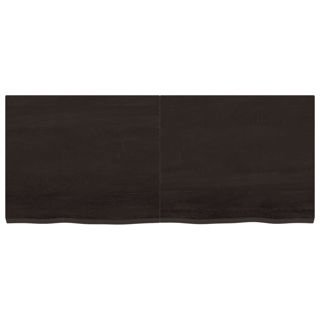 Are you planning to renovate your countertops at home? This wooden bathroom countertop is a perfect choice! Durable construction: This bathroom worktop is made of solid oak wood, which is a beautiful natural material. Oak wood has a medium brown colour and a dense grain, contributing to its unique look. Due to the hinge design, it can be folded and stored in narrow spaces.Versatile applications: Besides a bathroom vanity top, this wooden countertop can be combined with different bases according to your needs. It can be used as a shelf, cabinet top, desk top, table top etc.Treated surface: The bathroom top has been treated with dark paint, so it is ready for use as an additional finish is not required.Handmade with live edge: This bathroom vanity countertop is handmade with a live edge. Due to that the knots, cracks, slightly curved shapes, and colour tones are part of the oak wood, every piece of oak countertop has its own unique character to display. The delivery is random. Good to know:As a natural product, wood may show knots and imperfections that we fill with black fillings to ensure a smooth appearance.