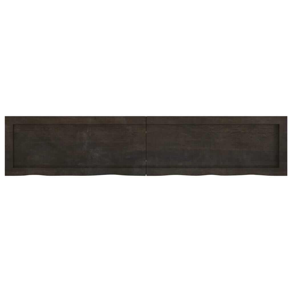 Are you planning to renovate your countertops at home? This wooden bathroom countertop is a perfect choice! Durable construction: This bathroom worktop is made of solid oak wood, which is a beautiful natural material. Oak wood has a medium brown colour and a dense grain, contributing to its unique look. Due to the hinge design, it can be folded and stored in narrow spaces.Versatile applications: Besides a bathroom vanity top, this wooden countertop can be combined with different bases according to your needs. It can be used as a shelf, cabinet top, desk top, table top etc.Treated surface: The bathroom top has been treated with dark paint, so it is ready for use as an additional finish is not required.Handmade with live edge: This bathroom vanity countertop is handmade with a live edge. Due to that the knots, cracks, slightly curved shapes, and colour tones are part of the oak wood, every piece of oak countertop has its own unique character to display. The delivery is random. Good to know:As a natural product, wood may show knots and imperfections that we fill with black fillings to ensure a smooth appearance.