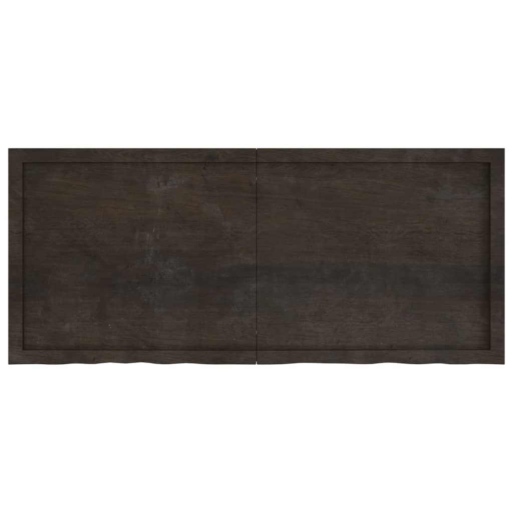 Are you planning to renovate your countertops at home? This wooden bathroom countertop is a perfect choice! Durable construction: This bathroom worktop is made of solid oak wood, which is a beautiful natural material. Oak wood has a medium brown colour and a dense grain, contributing to its unique look. Due to the hinge design, it can be folded and stored in narrow spaces.Versatile applications: Besides a bathroom vanity top, this wooden countertop can be combined with different bases according to your needs. It can be used as a shelf, cabinet top, desk top, table top etc.Treated surface: The bathroom top has been treated with dark paint, so it is ready for use as an additional finish is not required.Handmade with live edge: This bathroom vanity countertop is handmade with a live edge. Due to that the knots, cracks, slightly curved shapes, and colour tones are part of the oak wood, every piece of oak countertop has its own unique character to display. The delivery is random. Good to know:As a natural product, wood may show knots and imperfections that we fill with black fillings to ensure a smooth appearance.