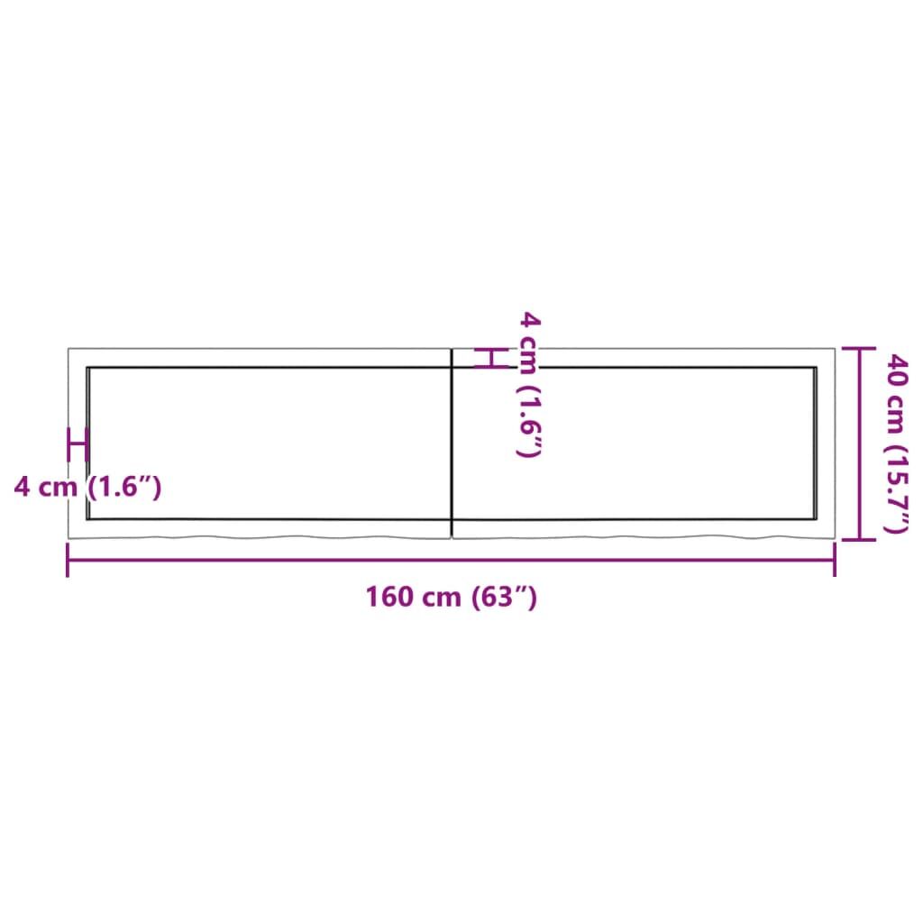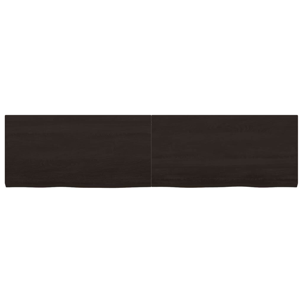 Are you planning to renovate your countertops at home? This wooden bathroom countertop is a perfect choice! Durable construction: This bathroom worktop is made of solid oak wood, which is a beautiful natural material. Oak wood has a medium brown colour and a dense grain, contributing to its unique look. Due to the hinge design, it can be folded and stored in narrow spaces.Versatile applications: Besides a bathroom vanity top, this wooden countertop can be combined with different bases according to your needs. It can be used as a shelf, cabinet top, desk top, table top etc.Treated surface: The bathroom top has been treated with dark paint, so it is ready for use as an additional finish is not required.Handmade with live edge: This bathroom vanity countertop is handmade with a live edge. Due to that the knots, cracks, slightly curved shapes, and colour tones are part of the oak wood, every piece of oak countertop has its own unique character to display. The delivery is random. Good to know:As a natural product, wood may show knots and imperfections that we fill with black fillings to ensure a smooth appearance.