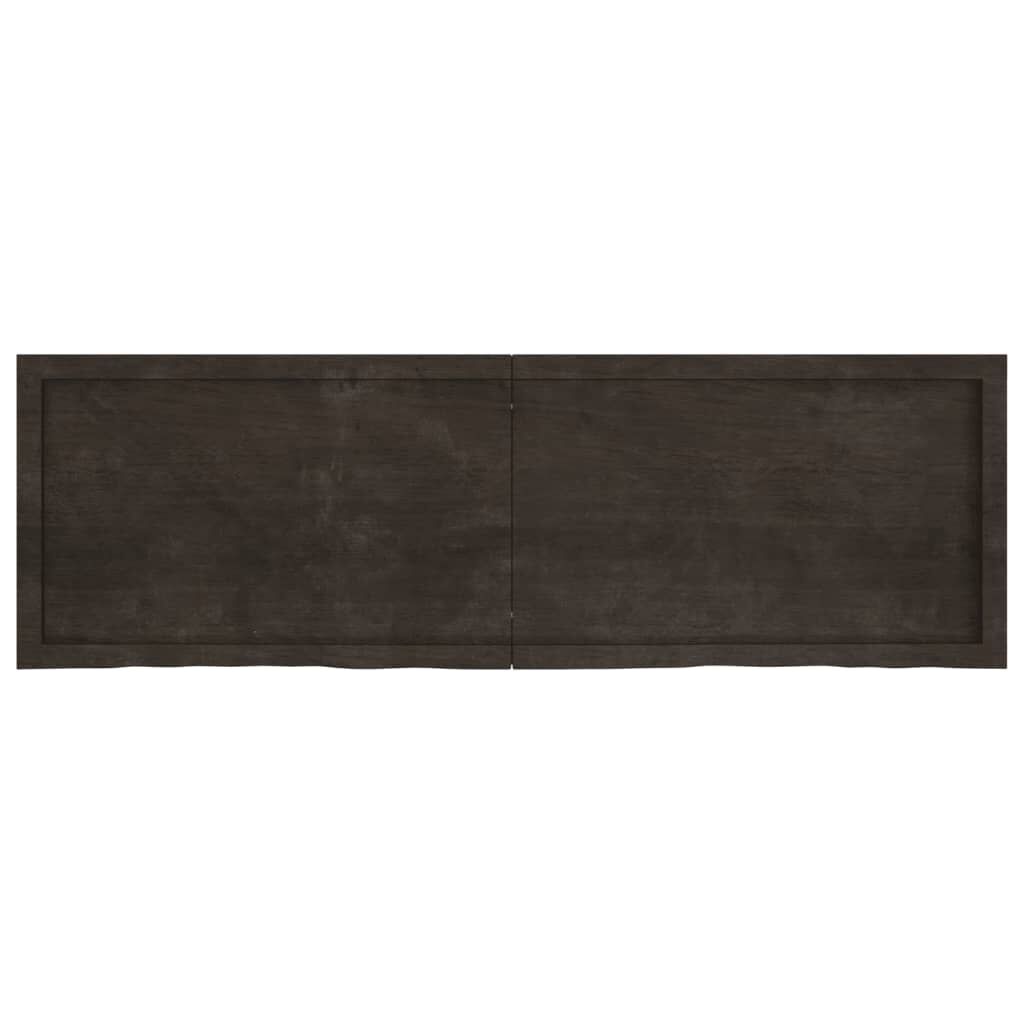 Are you planning to renovate your countertops at home? This wooden bathroom countertop is a perfect choice! Durable construction: This bathroom worktop is made of solid oak wood, which is a beautiful natural material. Oak wood has a medium brown colour and a dense grain, contributing to its unique look. Due to the hinge design, it can be folded and stored in narrow spaces.Versatile applications: Besides a bathroom vanity top, this wooden countertop can be combined with different bases according to your needs. It can be used as a shelf, cabinet top, desk top, table top etc.Treated surface: The bathroom top has been treated with dark paint, so it is ready for use as an additional finish is not required.Handmade with live edge: This bathroom vanity countertop is handmade with a live edge. Due to that the knots, cracks, slightly curved shapes, and colour tones are part of the oak wood, every piece of oak countertop has its own unique character to display. The delivery is random. Good to know:As a natural product, wood may show knots and imperfections that we fill with black fillings to ensure a smooth appearance.