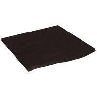Are you planning to renovate your countertops at home? This wooden bathroom countertop is a perfect choice! Durable construction: This bathroom worktop is made of solid oak wood, which is a beautiful natural material. Oak wood has a medium brown colour and a dense grain, contributing to its unique look.Versatile applications: Besides a bathroom vanity top, this wooden countertop can be combined with different bases according to your needs. It can be used as a shelf, cabinet top, desk top, table top etc.Treated surface: The bathroom top has been treated with dark paint, so it is ready for use as an additional finish is not required.Handmade with live edge: This bathroom vanity countertop is handmade with a live edge. Due to that the knots, cracks, slightly curved shapes, and colour tones are part of the oak wood, every piece of oak countertop has its own unique character to display. The delivery is random. Good to know:As a natural product, wood may show knots and imperfections that we fill with black fillings to ensure a smooth appearance.
