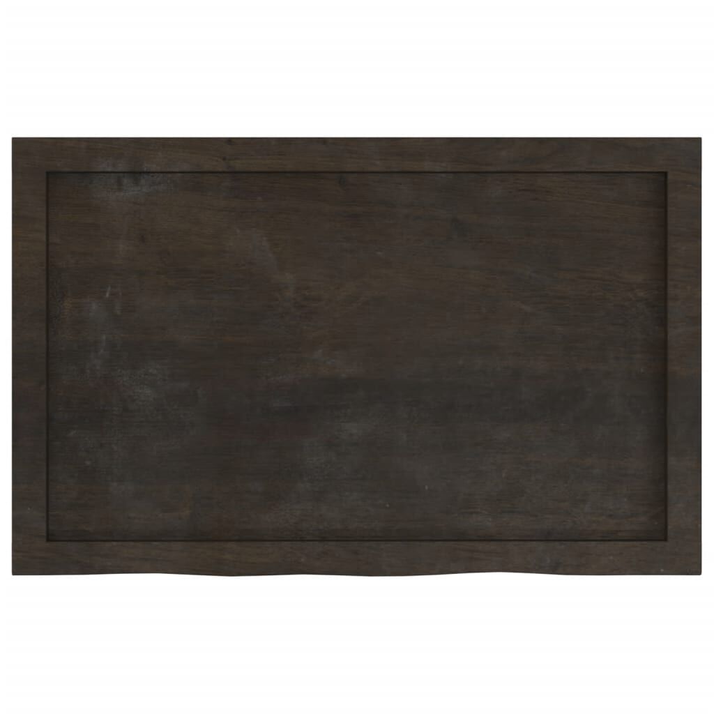 Are you planning to renovate your countertops at home? This wooden bathroom countertop is a perfect choice! Durable construction: This bathroom worktop is made of solid oak wood, which is a beautiful natural material. Oak wood has a medium brown colour and a dense grain, contributing to its unique look.Versatile applications: Besides a bathroom vanity top, this wooden countertop can be combined with different bases according to your needs. It can be used as a shelf, cabinet top, desk top, table top etc.Treated surface: The bathroom top has been treated with dark paint, so it is ready for use as an additional finish is not required.Handmade with live edge: This bathroom vanity countertop is handmade with a live edge. Due to that the knots, cracks, slightly curved shapes, and colour tones are part of the oak wood, every piece of oak countertop has its own unique character to display. The delivery is random. Good to know:As a natural product, wood may show knots and imperfections that we fill with black fillings to ensure a smooth appearance.