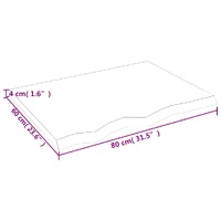 Are you planning to renovate your countertops at home? This wooden bathroom countertop is a perfect choice! Durable construction: This bathroom worktop is made of solid oak wood, which is a beautiful natural material. Oak wood has a medium brown colour and a dense grain, contributing to its unique look.Versatile applications: Besides a bathroom vanity top, this wooden countertop can be combined with different bases according to your needs. It can be used as a shelf, cabinet top, desk top, table top etc.Treated surface: The bathroom top has been treated with dark paint, so it is ready for use as an additional finish is not required.Handmade with live edge: This bathroom vanity countertop is handmade with a live edge. Due to that the knots, cracks, slightly curved shapes, and colour tones are part of the oak wood, every piece of oak countertop has its own unique character to display. The delivery is random. Good to know:As a natural product, wood may show knots and imperfections that we fill with black fillings to ensure a smooth appearance.