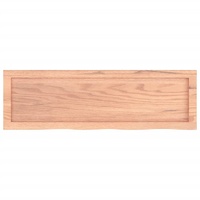Are you planning to renovate your countertops at home? This wooden bathroom countertop is a perfect choice! Durable construction: This bathroom worktop is made of solid oak wood, which is a beautiful natural material. Oak wood has a medium brown colour and a dense grain, contributing to its unique look.Versatile applications: Besides a bathroom vanity top, this wooden countertop can be combined with different bases according to your needs. It can be used as a shelf, cabinet top, desk top, table top etc.Treated surface: The bathroom top has been varnished so it is ready for use as an additional finish is not required.Handmade with live edge: This bathroom vanity countertop is handmade with a live edge. Due to that the knots, cracks, slightly curved shapes, and colour tones are part of the oak wood, every piece of oak countertop has its own unique character to display. The delivery is random. Good to know:As a natural product, wood may show knots and imperfections that we fill with black fillings to ensure a smooth appearance.