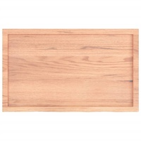 Are you planning to renovate your countertops at home? This wooden bathroom countertop is a perfect choice! Durable construction: This bathroom worktop is made of solid oak wood, which is a beautiful natural material. Oak wood has a medium brown colour and a dense grain, contributing to its unique look.Versatile applications: Besides a bathroom vanity top, this wooden countertop can be combined with different bases according to your needs. It can be used as a shelf, cabinet top, desk top, table top etc.Treated surface: The bathroom top has been varnished so it is ready for use as an additional finish is not required.Handmade with live edge: This bathroom vanity countertop is handmade with a live edge. Due to that the knots, cracks, slightly curved shapes, and colour tones are part of the oak wood, every piece of oak countertop has its own unique character to display. The delivery is random. Good to know:As a natural product, wood may show knots and imperfections that we fill with black fillings to ensure a smooth appearance.