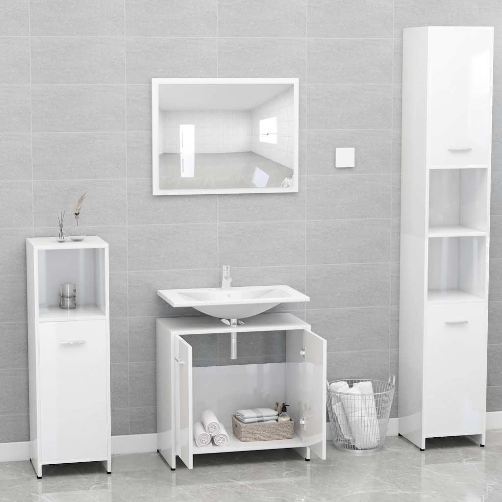With this stylish bathroom furniture set, you can create additional storage space for your bathroom with a striking, tidy appearance. The clean lines and sleek design blend into your bathroom perfectly. The furniture set, featuring a mirror and a cabinet, is made of durable and stable engineered wood. This chic cabinet features 1 compartment and 2 doors, offering ample storage space to store items in your bathroom. There is a handle on each door for better opening and closing. The mirror also adds an excellent appearance to your home decor. Additionally, this bathroom set is easy to clean with a damp cloth.