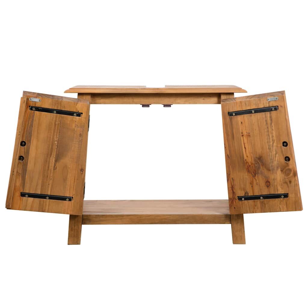 This retro-style wooden bathroom set will add a touch of rustic charm to your bathroom. The sturdy and durable vanity cabinet and mirror frame were crafted from solid pinewood. The craftsmanship adds to their vintage style. Assembly is easy. Delivery includes 1 vanity cabinet and 1 mirror. Important note: Colours and wood grains vary from piece to piece, making each of our furniture unique and slightly different from the next. The delivery is random, ensuring the exclusivity and individuality of your product.