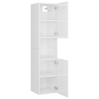 With this stylish bathroom furniture set, you can create additional storage space for your bathroom with a striking, tidy appearance. The clean lines and sleek design blend into your bathroom perfectly. The furniture set consists of a sink cabinet, a low cabinet, a high cabinet, and a mirror. The chic basin cabinet has 1 compartment, and the top of it is ideal for placing the sink. The high cabinet features a total of 5 compartments and 2 doors while the low cabinet has 2 compartments. These 2 cabinets offer various storage options and extra space to store items in your bathroom. The mirror also adds an excellent appearance to your home decor. Additionally, this bathroom set is easy to clean with a damp cloth. Please note: The sink, tap, and drain are not included in the delivery.