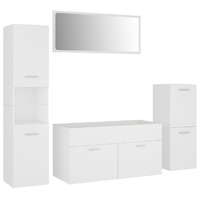 With this stylish bathroom furniture set, you can create additional storage space for your bathroom with a striking, tidy appearance. The clean lines and sleek design blend into your bathroom perfectly. The furniture set consists of a sink cabinet, a low cabinet, a high cabinet, and a mirror. The chic basin cabinet has 1 compartment, and the top of it is ideal for placing the sink. The high cabinet features a total of 5 compartments and 2 doors while the low cabinet has 2 compartments. These 2 cabinets offer various storage options and extra space to store items in your bathroom. The mirror also adds an excellent appearance to your home decor. Additionally, this bathroom set is easy to clean with a damp cloth. Please note: The sink, tap, and drain are not included in the delivery.
