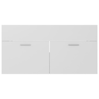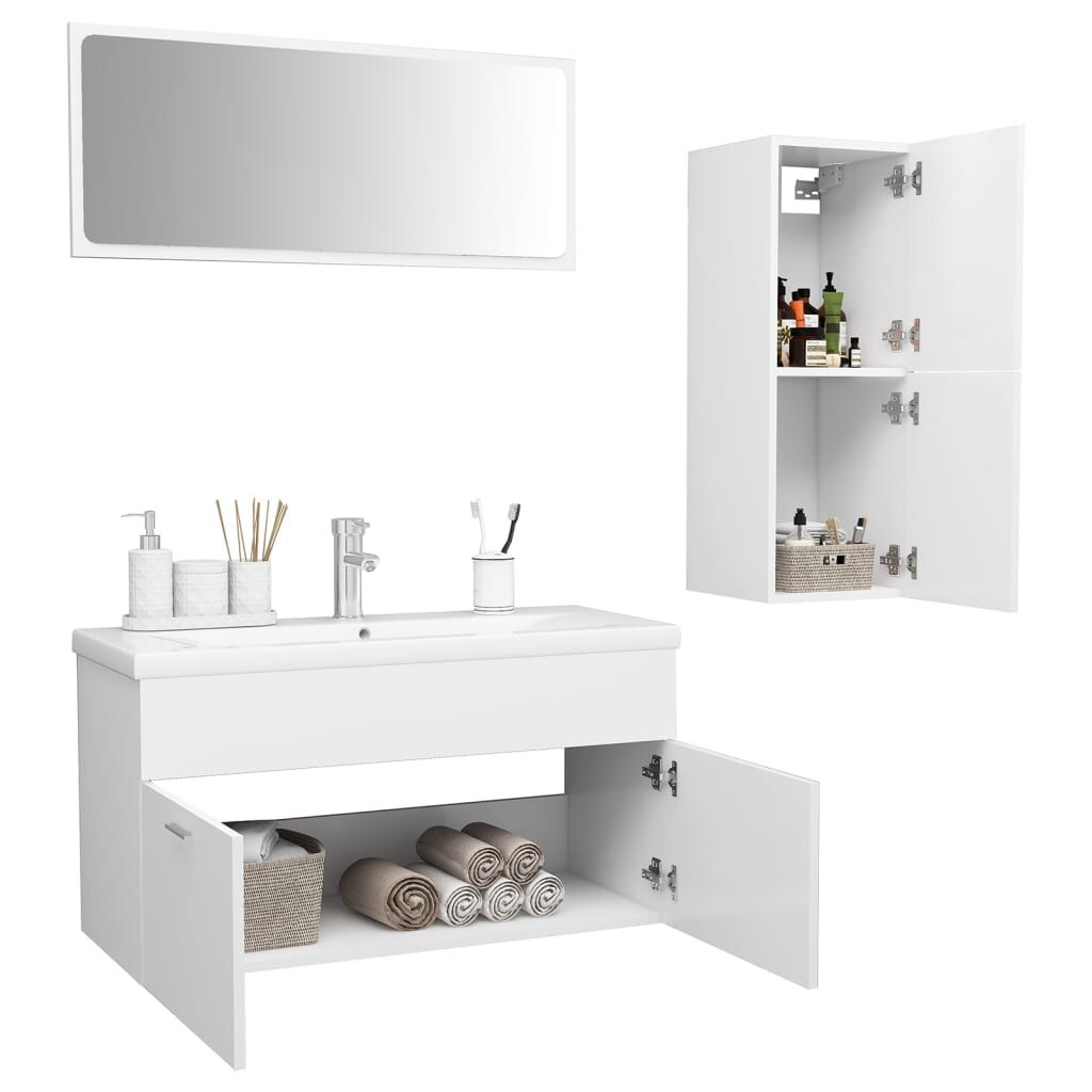With this stylish bathroom furniture set, you can create additional storage space for your bathroom with a striking, tidy appearance. The clean lines and sleek design blend into your bathroom perfectly. The furniture set consists of a sink cabinet, a low cabinet, and a mirror. The chic basin cabinet has 1 compartment, and the top of it is ideal for placing the sink. The low cabinet features 2 compartments, offering ample space to store items in your bathroom. The mirror also adds an excellent appearance to your home decor. Additionally, this bathroom set is easy to clean with a damp cloth. Please note: The sink, tap, and drain are not included in the delivery.