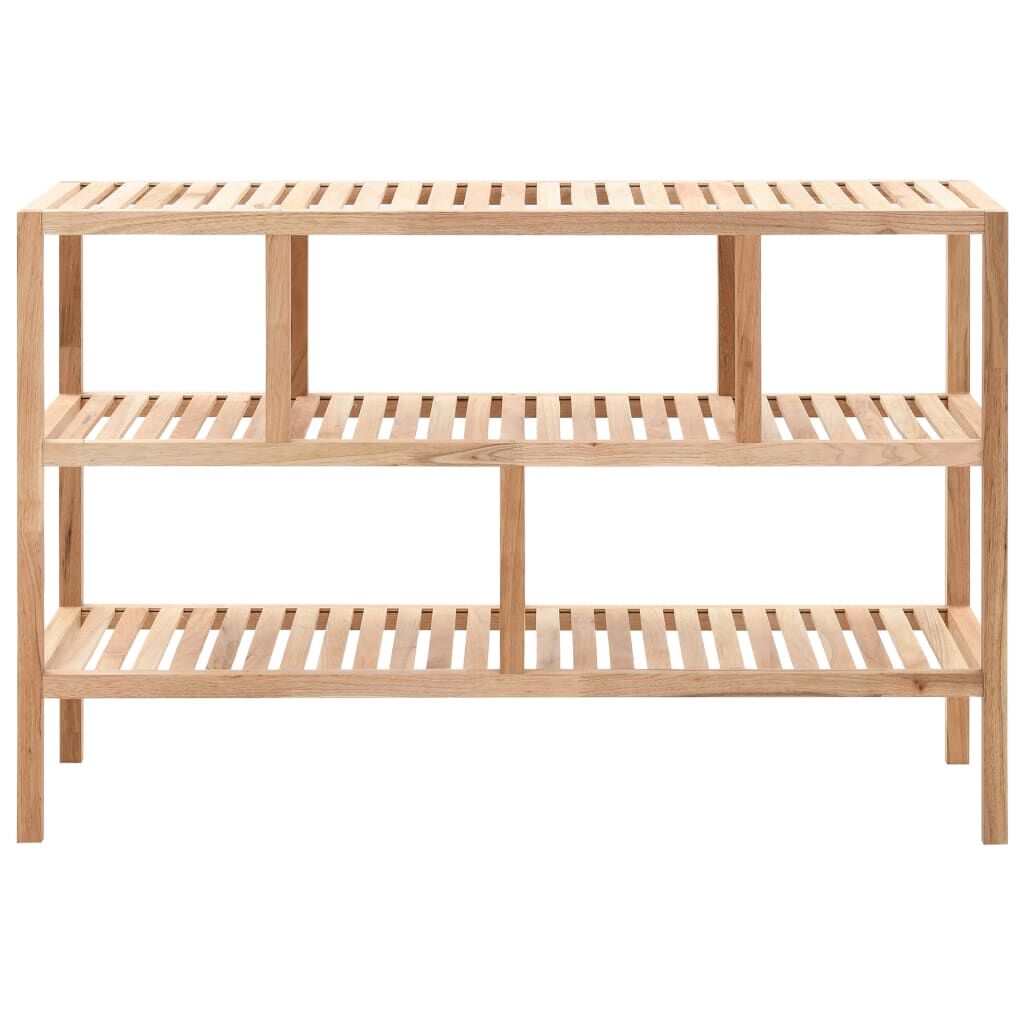 Our wooden storage shelf, made of solid walnut wood, will bring a touch of natural style to your home. The 3-tier storage shelf has a slatted design and will keep your items organised and ventilated. The wooden storage rack is sturdy and durable. This wooden bathroom shelf will suit your interior decor perfectly and provides a convenient storage solution. The storage shelf is easy to assemble. Note: Wood is a natural product, so colours may vary from batch to batch; delivery is random.