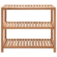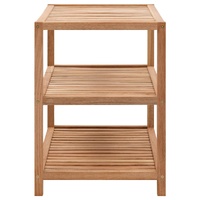 Our wooden bathroom shelf, with a simple and practical design, will make a great addition to your bathroom. It can also be used as a storage rack, sideboard, etc. The shelf has three platforms, which provide ample storage space for things like towels and hygiene products. The slatted design allows for a good ventilation of the things on the shelves. Made of solid walnut wood, the shelf is very sturdy and durable. The bathroom shelf is easy to assemble. Warning: To prevent it being overturned, this product must be used with the provided wall attachment device.