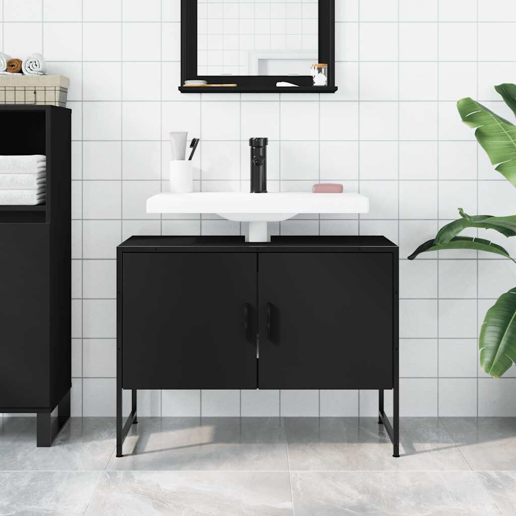 This bathroom sink cabinet is an excellent addition to your bathroom, giving it a tidy and striking appearance! Sturdy construction: The powder-coated steel and engineered wood ensure sturdy construction and provide your items with strong support.Ample storage space: The bathroom sink cupboard offers ample space to easily accommodate your essential toiletries and bath items such as soaps, shampoo, toothpaste, etc.Space-saving design: The top of the bathroom cabinet is ideal for placing the sink so that you can fully utilise the vacant space under the sink. Warning:To prevent it being overturned, this product must be used with the provided wall attachment device.