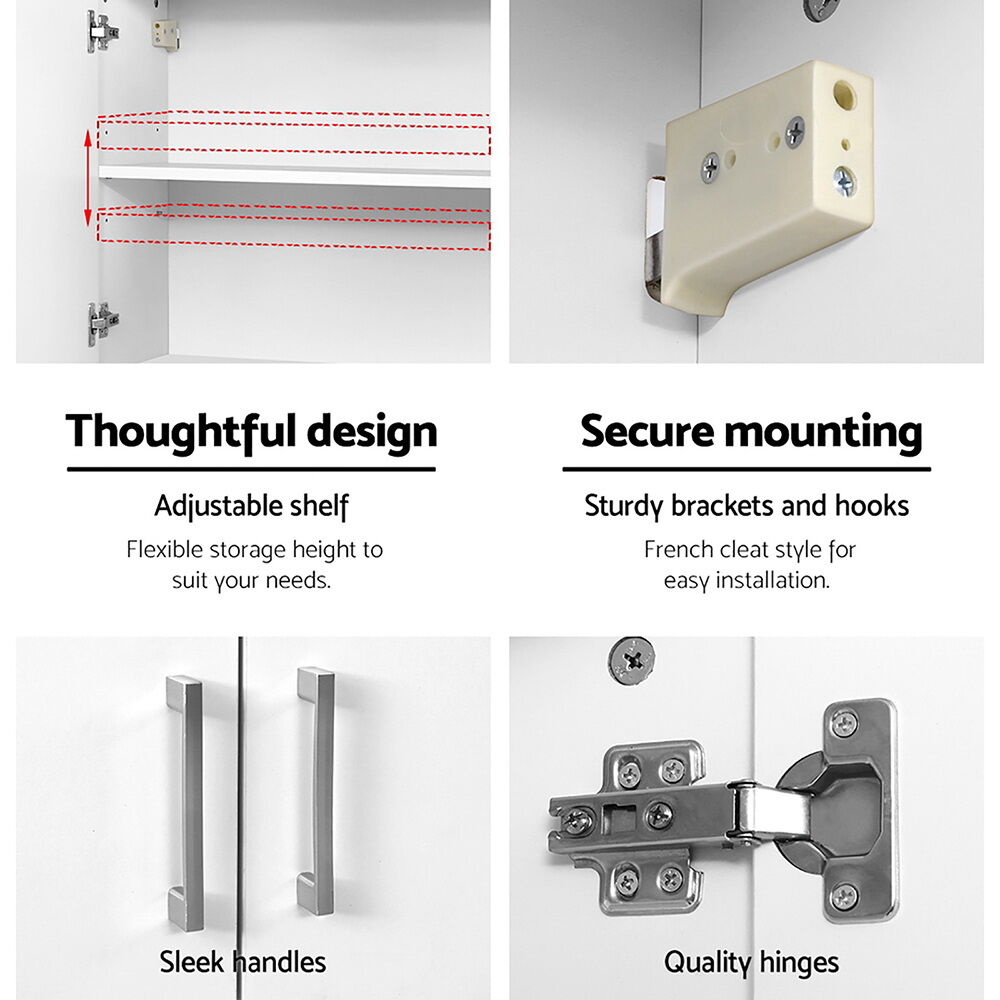 $108.09Tired of a messy home? Running out of storage space? Thankfully, you can start to declutter and organise your home beautifully with our sleek Cefito Wall Cabinet. Featuring an E1 engineered wood construction that is eco-friendly and non-irritating, our wall cabinet is a two-shelf cupboard with adjustable middle shelf to accommodate contents of various sizes. You will find quality hinges and sleek sturdy handles for hassle-free opening and closing, and smooth round edges for safe use. More importantly, the cabinet has a French cleat style mounting system with sturdy brackets and hooks for easy installation. Not least, its contemporary design will match easily with any modern décor as will its compact sizing. In fact, the wall cabinet is perfect for creating extra overhead space wherever it is needed: in your kitchen, bathroom, living room, bedroom, balcony, office and more. So start organising your home and your lifestyle with our simple and extremely functional wall cabinet.