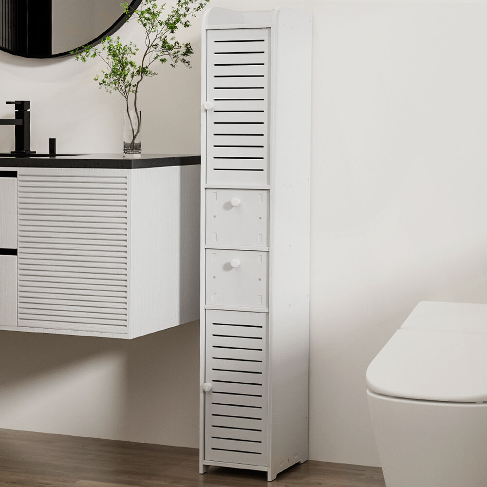 $70.49Keep your bathroom organised with an Artiss Bathroom Storage Cabinet. This neat and tidy storage solution is made from durable, water-resistant materials. Two generous drawers, two ventilated storage cabinets and an open tabletop with round edges give you plenty of room for your bathroom essentials. Smooth silver handles help you pull out the drawers with ease. The louvred cabinet doors allow for proper airflow throughout the shelves. The space-saving design means you can place it anywhere in your bathroom with ease. Easy to install and easy to clean, the Artiss Bathroom Storage Cabinet is just what your bathroom needs to stay tidy.