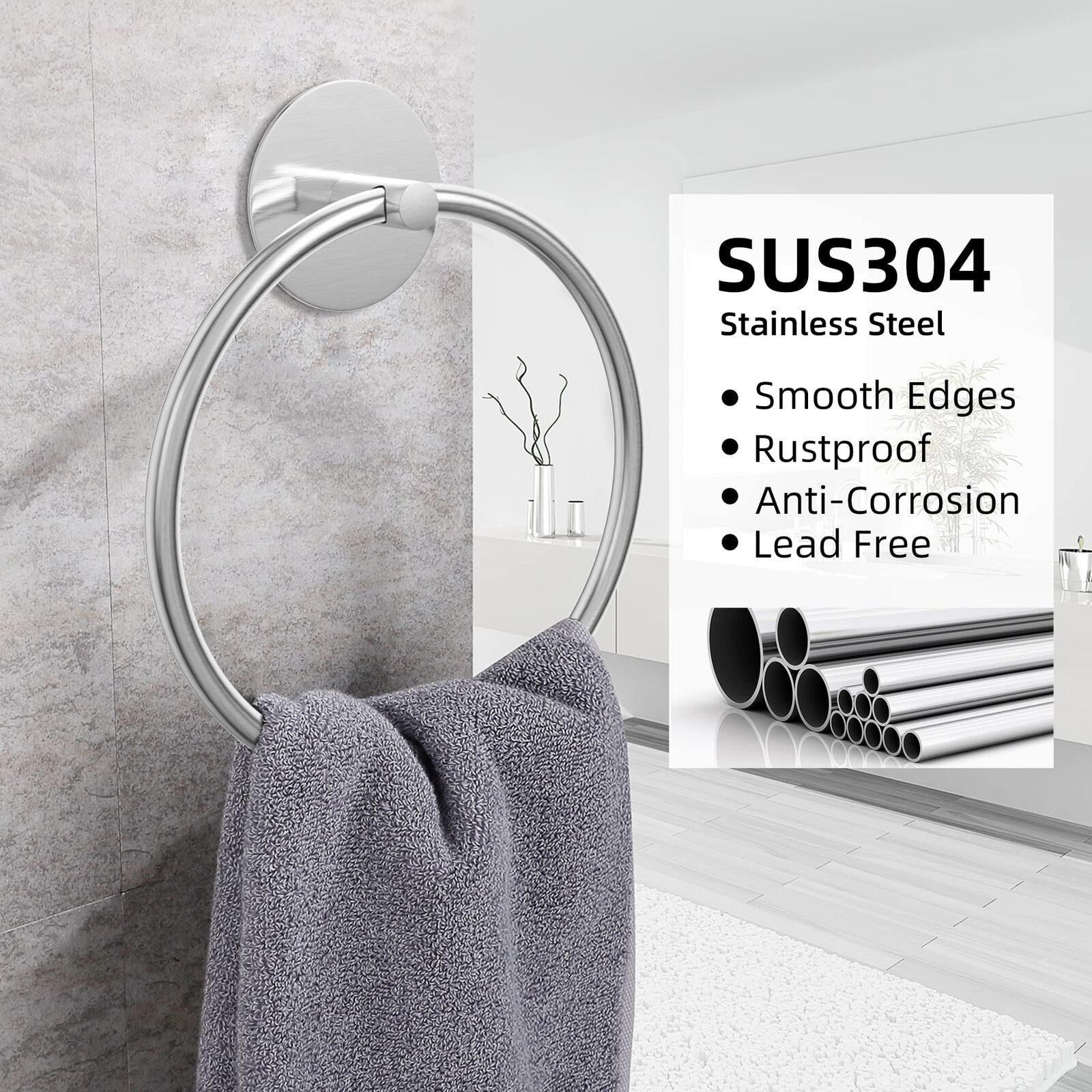 Bathroom Towel Ring Bathroom Towel Rack Adhesive Hand Towels Holder Towel Hanger Round Silver