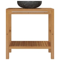 This stylish wooden bathroom cabinet with a sink with beautiful yet simplistic style is a perfect match for your bathroom or washroom decor. The sink cabinet is constructed from solid teak wood which is durable and sturdy enough to place a basin on the top, including other bathroom accessories. The vanity cabinet has a handrail for hanging towels or clothes. It also has four supporting legs to ensure stability and dryness above the ground. The striking basin is user-friendly for everyday use and is a wonderful adornment for your living space. Fully handmade of graceful marble, the basin is extremely sturdy with an elegant look. Additionally, the washbasin is very easy to clean. The cabinet fits perfectly under your sink and makes bathroom storage quite convenient. Note: Marble is a natural product and colour differences might therefore occur. The real product might be lighter or darker than in the photos and sometimes there might be a mix of colours in the product.