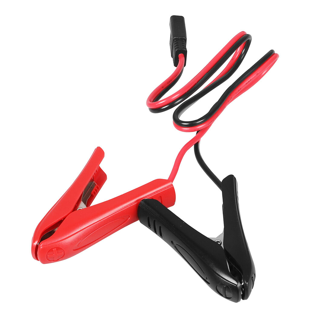 Ever messed up red and black? I am always perfect charging my car battery. (I wish.) Charge 12 volt 14.4 volt or 24 volt batteries. Don’t worry about short circuits or reversing the polarity.