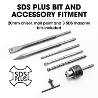 The Baumr-AG1500W SDS Plus comes with a moil tool (pyramidal point) and a 20mm chisel for tile removal, light demolition and rehab work! This outstanding package includes 3 Bonus Carbide SDS-Plus masonry bits. The SDS chuck is also compatible with standard SDS bits and tools. Plus, it comes with an SDS-Plus adaptor to attach a standard chuck for use with standard drill and driver bits.