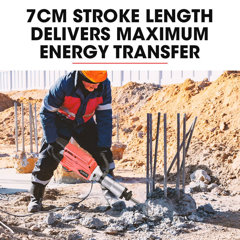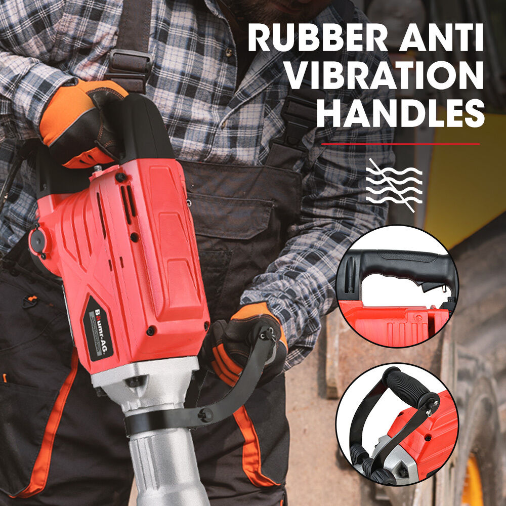 The BMJK-23S Mk II has massive torque! Combined with superior motor construction, it gives a huge performance of 2300W that utilises maximum power for demolition works, whether breaking up concrete, digging, chipping, squaring, or grooving, it is the perfect tool on-site. The Baumr-AG 2300W Jackhammer also makes removing tiles, old pebblecrete, stone and masonry a breeze. Need to renovate that kitchen or bathroom? Maybe move a worn-out retaining wall? This tool makes easy work of your demolition projects.
