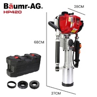$647.65Introducing the New Baumr-AG HP420 38cc Four-Stroke Post driver. This is the perfect machine for driving fence posts, star pickets, tent stakes, and other similar objects into the ground. The powerful 8500 RPM Overhead Cam Engine delivers a powerful blow, in a lightweight efficient package. Transferring 35J at impact up to 2300 times a minute, youll make quick work of the job at hand.