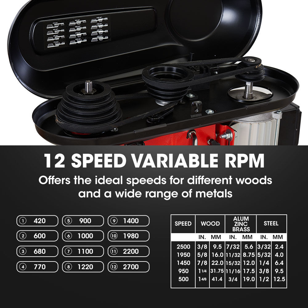 $388.21The Baumr-AG DP17 Bench Drill Press is the cornerstone addition to any workshop. Featuring 12 speed variable RPM settings, a 16mm solid stainless steel chuck and a 600W brushless motor offering the power and longevity you need. This bench mounted unit offers the torque, components and versatility required to execute a range of drilling tasks through a whole host of materials.
