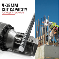 With a forged 14 bolt industrial strength head, the RB16H will cleanly shear straight through rebar from 4mm up to 16mm rebar, plus chains, bolts and rods. The unit comes site ready complete with a rugged carry case and tools.