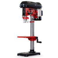 The DP15 pedestal drill has been designed with smooth, powerful and consistent drilling in front of mind. Its 60mm depth adjustable drill travel is accompanied by a sturdy cast iron work table, accommodating the various types of objects to be drilled and the precision required. Moreover, the work table is also angle adjustable up to 45° in either direction. The large three spoke handle works in harmony with the rack and pinion spindle feed to produce a clean and fluid press. The chuck guard can be extended downwards to offer optimal user protection and can be easily retracted for quick drill bit changes. The DP15 has a large easy access emergency shut-off button, It also comes fitted with dust protected NVR switches, so no restart will occur once power is restored in the event of an outage.